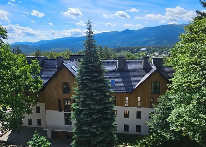 Nabízející venkovní plavecký bazén, apartmán Pine Point Apartament With Shared Pools, Jacuzzi, Sauna & Gym je umístěn 2 km od Szklarka Waterfall. Nabízí kuchyňku s mikrovlnnou troubou, rychlovarnou konvicí a chladničkou, místo se nachází 20 minut chůze od centra města Sklářská Poruba.
